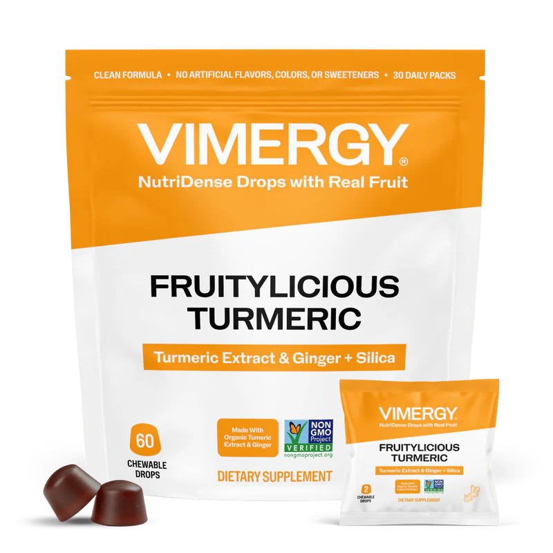 VIMERGY Fruitylicious Turmeric Chew Drops are made from real fruits and roots, and designed to promote joint health, mobility and flexibility.